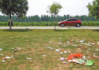 黄河大堤上到处是游客遗留下的垃圾